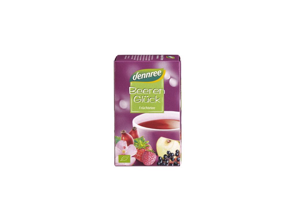 Dennree Beerenglück ovocný čaj je harmonicky vyvážená směs aromatického ibišku, plně zralých bobulí a ovocných kousků jablek a pomerančové kůry. Lékořice dává čaji mírně sladkou notu. Aby byla zaručena dobrá chuť a nejvyšší kvalita, jsou plody z kontrolovaného ekologického pěstování pečlivě vybírány a šetrně zpracovávány. Vychutnejte si ovocně-aromatickou chuť bobulí.