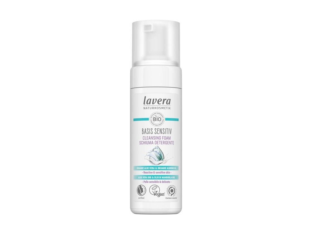 lavera Basis Sensitiv Čisticí pleťová pěna je vhodná pro každodenní čištění citlivé a problematické pleti. Pěnová struktura zajistí dokonalé očištění pleti od zbytků make-upu, kožního mazu a ostatních nečistot. Obsažená Bio Aloe vera má hydratační a zklidňující účinky, zpomaluje procesy stárnutí a podporuje tvorbu kolagenu. Bio extrakt z květů Slézu brání vysušování a zklidňuje podrážděnou pleť. Vitamín E působí antioxidačními účinky a chrání pleť před volnými radikály. Po použití Čisticí pleťové pěny je pleť dokonale čistá a připravená na další krok ve vašem pleťovém rituálu.