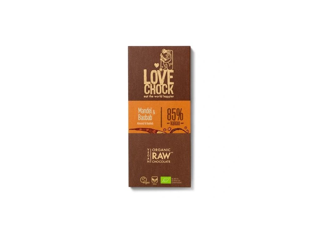 Lovechock Raw čokoláda mandle a baobab 85% 70 g bio BIO VEGAN BEZLEPEK Množství: 1 ks