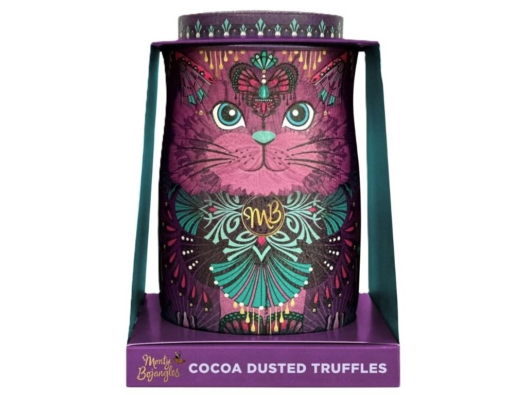 MONTY BOJANGLES VIOLET REBEL CAT TIN - ČOKOLÁDOVÉ LANÝŽE V DÁRKOVÉ DÓZE KOČKA "FIALOVÁ REBELKA"