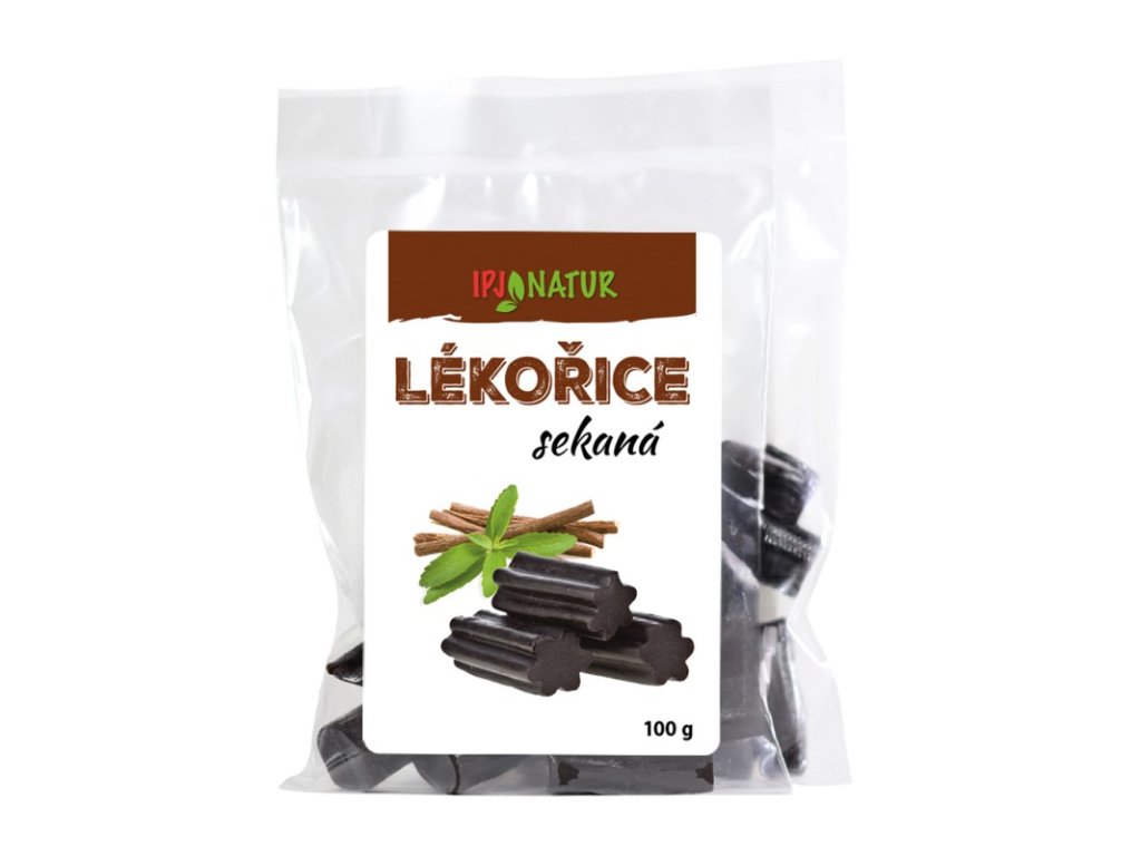LÉKOŘICE SEKANÁ Lékořicové kousky jsou cukrovinka obsahující lékořici určená k přímé konzumaci. Obsahuje antioxidanty a látky využívané v tradiční medicíně. Kořen lékořice se v tradiční medicíně využívá po staletí díky svým léčivým vlastnostem. Je bohatý na sloučeniny s protizánětlivými a antivirovými účinky. V kuchyni je lékořice oblíbená pro svou schopnost dodat pokrmům specifickou sladkou a kořeněnou chuť. Složení: glukózový sirup, pšeničná mouka, cukr, lékořicový extrakt, zvlhčovač sorbitol E420 , zahušťovadlo guarová guma E412, konzervant sorban draselný E202, aroma, barvivo E153, leštidlo karnaubský vosk E903 Země původu : Finsko Použití: Lékořicové kousky mohou být alternativou rychlých svačinek, dobře poslouží při chuti na něco sladkého nebo jako sladké zakončení po jídle. Lze je použít při pohoštění přátel, experimentovat s nimi při přípravě sladkých dezertů a pochutin nebo je použít jako dekoraci cukrářských výrobků. Jsou dobrým a praktickým společníkem při cestování. Alergeny: Výrobek může obsahovat lepek, skořápkové plody, arašídy, sóju, sezam, oxid siřičitý a siřičitany z důvodu zpracování potravin způsobem křížových cest. Skladování: Skladujte v suchu a chladu. Chraňte před přímým slunečním zářením. Hmotnost: 100gr IPJ NATUR je česká společnost ze Zlína, která se zaměřuje na výrobu a distribuci kvalitních surovin, specializuje se na sortiment zdravé výživy, BIO a bezlepkových produktů. Výrobce: IPJ NATUR s.r.o. Chmelnická 194, 760 01 Zlín, Česká republikaDoplňkové parametry