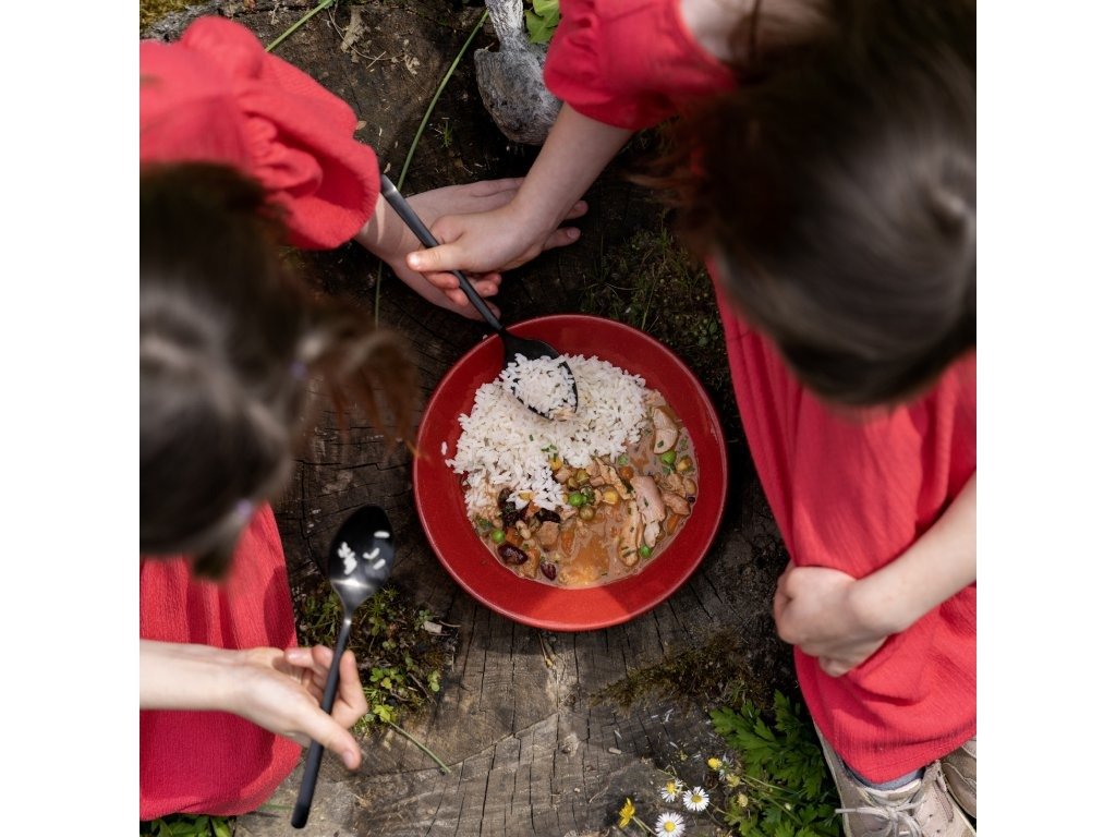 Složení: kuřecí stehenní maso (31 %), drůbeží vývar (voda, drůbeží maso a kosti), cibule, fazole, mrkev, hrášek, kukuřice, řepkový olej, rýžová mouka, kukuřičná mouka, sůl kamenná, paprika mletá, pepř, chilli.