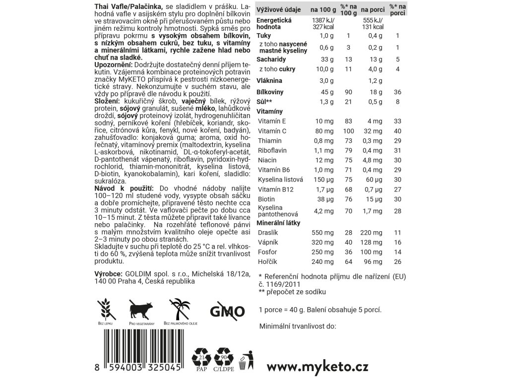 MyKETO Asie THAI vafle/palačinka 5 porcí 200g