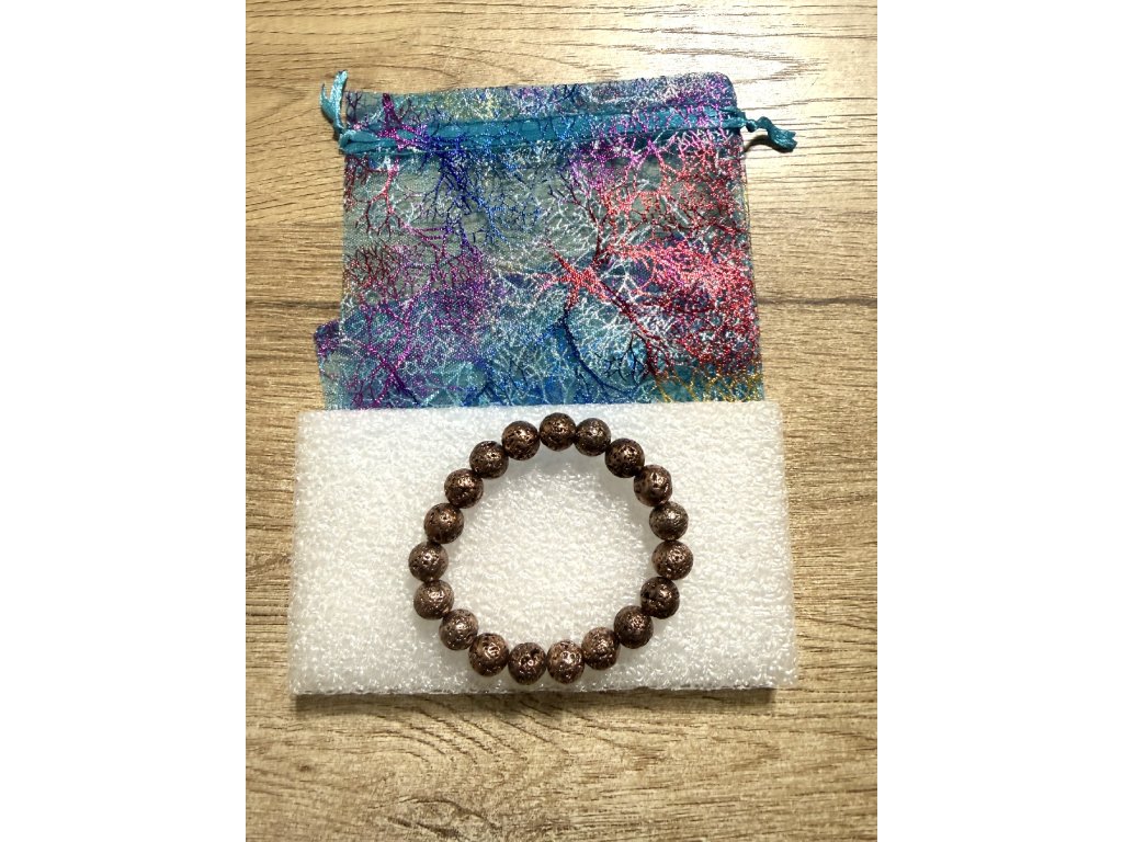 Náramek z lávových korálků v měděném provedení, 10 mm