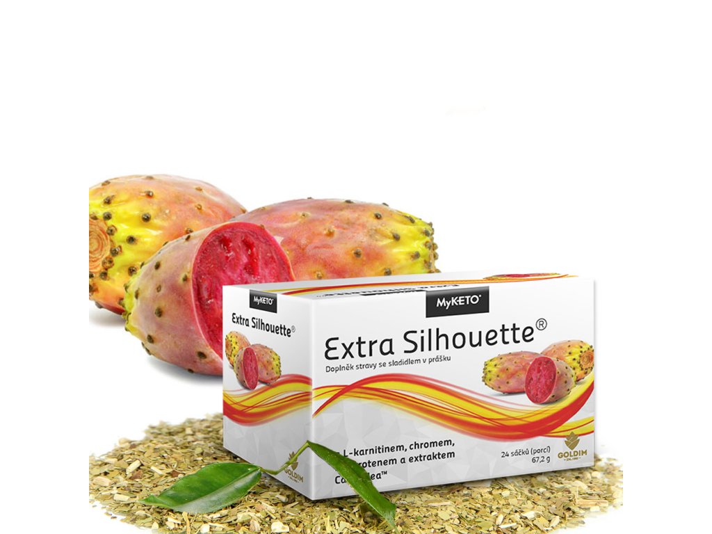 Lahodný bioaktivní nápoj, pro vaši krásnější postavu, výborné chuti s organickým chromem, L-karnitinem, Yerbou Maté a unikátní patentovanou složkou Cacti-Nea™. Ve složení nechybí ani ochranný provitamín A, beta-karoten. Cacti-Nea™ - byla pozitivně klinicky testována pro zlepšení vzhledu „pomerančové“ kůže. ✓ Chrom přispívá k udržení normální hladiny glukózy v krvi a k normálnímu metabolismu makroživin. ✓ Vitamín A přispívá k normální funkci imunitního systému, udržení normální stavu pokožky, zraku a sliznic, podílí se na procesu specializace buněk. Péče o problematické partie - extrakt z CACTI-NEA™& yerba maté ✓ Cacti-Nea™ je patentovaný extrakt z plodu opuncie, jehož účinky byly klinicky testovány.Cacti-Nea™ efektivně pečuje o problematické partie lidského těla. Několika klinickými studiemi byly potvrzeny mimořádné účinky velmi kvalitního bylinného výtažku Cacti-Nea™. ✓ Yerba maté, drcené sušené lístky Cesmíny paraguajské, posvátné rostliny jihoamerických domorodců kmene Guarani, byly tradičně využívány k přípravě „nápoje Bohů“, mimo jiné jím indiáni tlumili hlad. Vedle vitamínů a minerálů yerba maté obsahuje také významné množství přírodního kofeinu a skvěle se hodí pro osvěžení apotlačení fyzické i duševní únavy. Spolu s Cacti-Nea™ představují skvělou kombinaci přírodních látek pro kontrolu hmotnosti a vodního hospodářství v těle a vylučování vody z organismu. ✓ Konzumace nápojů obsahujících sukralózu namísto cukru vede k omezení nárůstu hladiny glukózy v krvi po jejich konzumaci v porovnání s nápoji obsahujícími cukr. Balení: 24 porcí (praktické balení po jednotlivých porcích), balení na 12 - 24 dnů. Užívání produktu Extra Silhouette je vhodné v rámci redukčního režimu. Začít s jeho užíváním můžete v libovolné fázi dietního plánu (1. - 3.), pokračovat v užívání je velmi přínosné i ve fázi udržovací (4. fáze). Dávkování: 1 sáček 1-2x denně. Max. 2 sáčky za den. Složení a výživové údaje najdete v galerii v obrázcích. Upozornění: Doplněk stravy není náhradou pestré stravy. Ukládejte mimo dosah dětí. Nadměrná konzumace může vyvolat projímavé účinky. Vhodný pro dospělé. Výrobek není určen pro děti, těhotné a kojící ženy. Nepřekračujte doporučenou denní dávku. Vhodný pro osoby s nesnášenlivostí lepku, vegetariány, diabetiky. Extra Silhouette, nápoj pro vaši krásnější postavu, byl vyvinut, vyroben a ověřen v ČRDoplňkové parametry