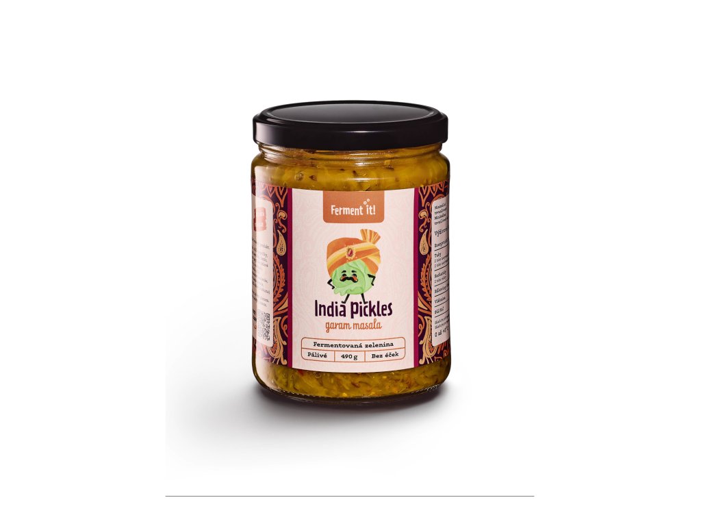 Pálivý produkt. Bez cukru. Bez lepku. Vegan. Ruční práce. Čisté složení. Pickles India je pikantní fermentovaná zelenina s červenou cibulí a chilli, ochucené směsí koriandru, kmínu, hořčičných semínek a exotických koření, které přinášejí pravou indickou chuťovou explozi. Hodí se k rýži, pečené nebo grilované zelenině, k masu i tofu, do bowlí a talířů s rýží nebo quinoou, do sendvičů a wrapů místo kyselé okurky, k sýrům (hlavně halloumi, feta, čedar), k vajíčkům (omeleta, míchaná vejce) nebo i jako kontrast k jednoduchým jídlům typu čočka na kyselo či brambory.Nutriční hodnoty
