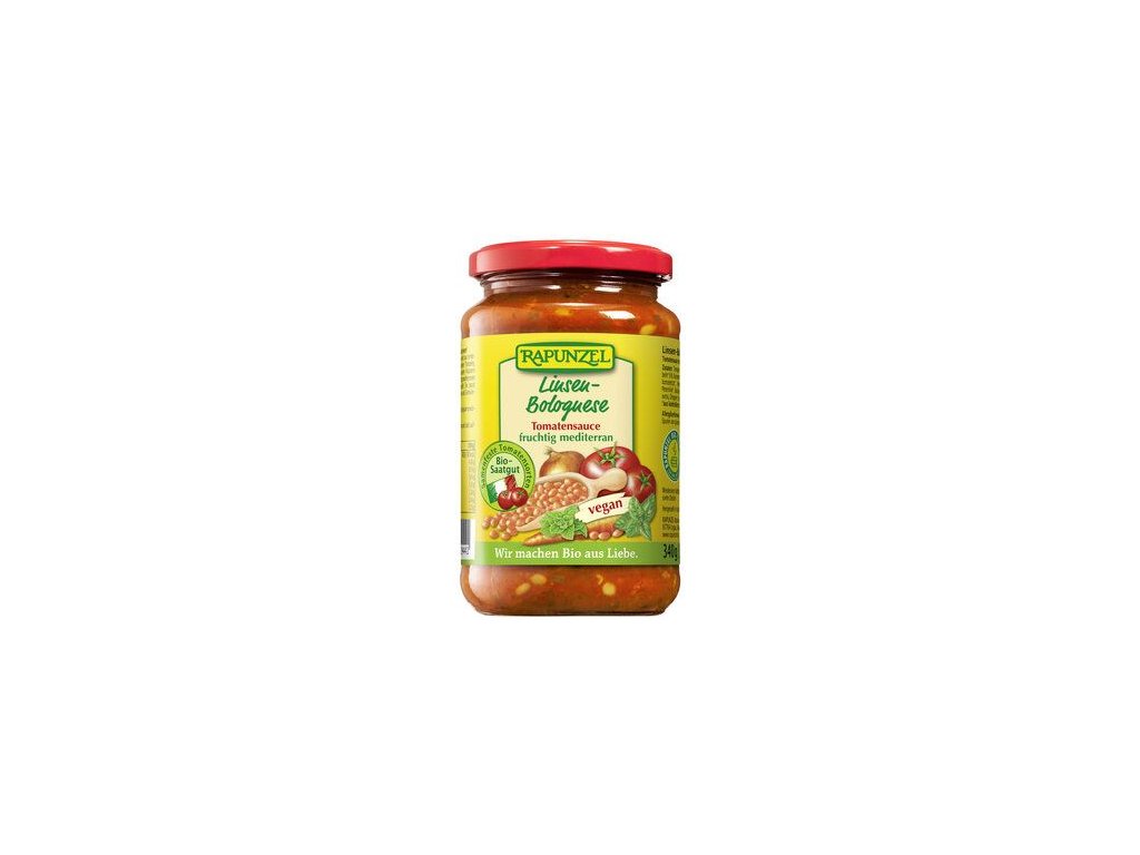 Veganská boloňská verze s červenou čočkou! Je to perfektní doplněk nebo alternativa k sójové verzi. Bolognese se vyrábí v Itálii ze sluncem vyzrálých, čerstvě sklizených rajčat, jemné červené čočky a aromatických bylin. Chutná nádherně ovocně-středomořská a skvěle se hodí k těstovinám, chilli, rýži, zeleninovým pokrmům a lasagním. Stačí ho krátce zahřát a užívat si. Rajčata obsažená v této rajčatové omáčce jsou 100% z Itálie. Rapunzel podporuje šlechtění a uchovávání organických semen odolných vůči semenům, např. také pro odrůdu rajčat "Mauro Rosso".