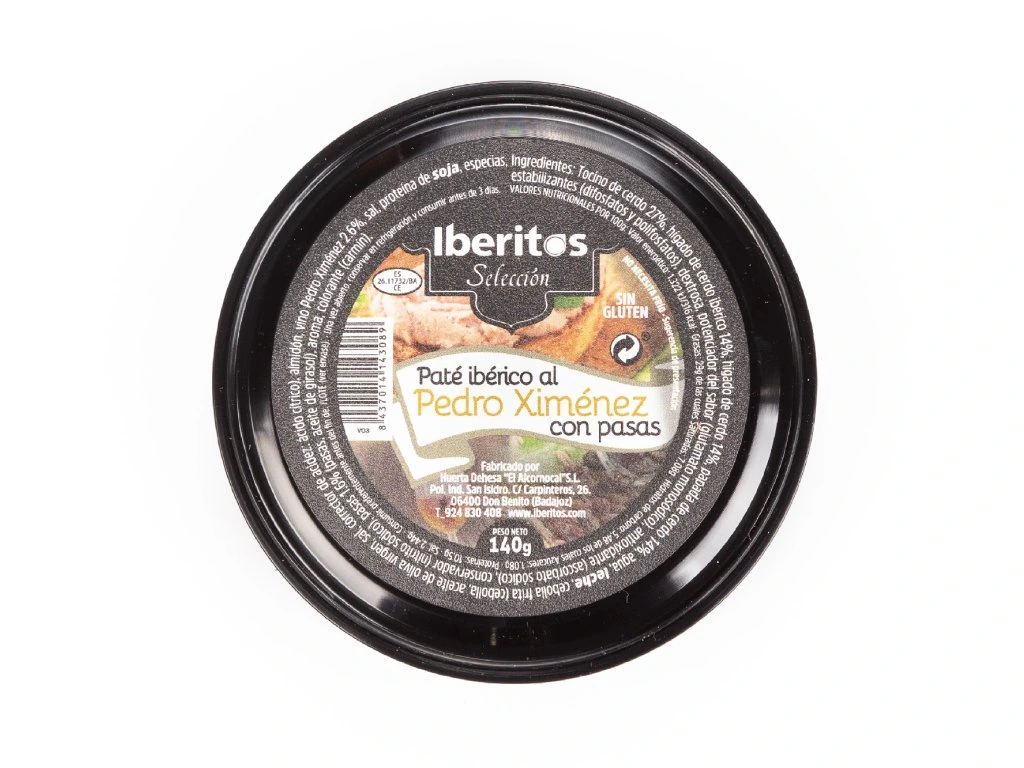 Složení: Vepřový špek 27% , játra z iberského prasete 14% , vepřová játra 14%, vepřový lalok 14%, voda, mléko, fritovaná cibule (cibule, panenský olivový olej, regulátor kyselosti) škrob, sůl, sójová bílkovina, koření, víno Pedxo Ximenéz 3%, stabilizátory (E450 – Difosforečnany, E452 – Polyfosforečnany) antioxidanty (Citronan sodný )konzervant E250, rozinky 2% (rozinky, slunečnicový olej) aroma, zvýraznovač chuti E621, barvivo E120