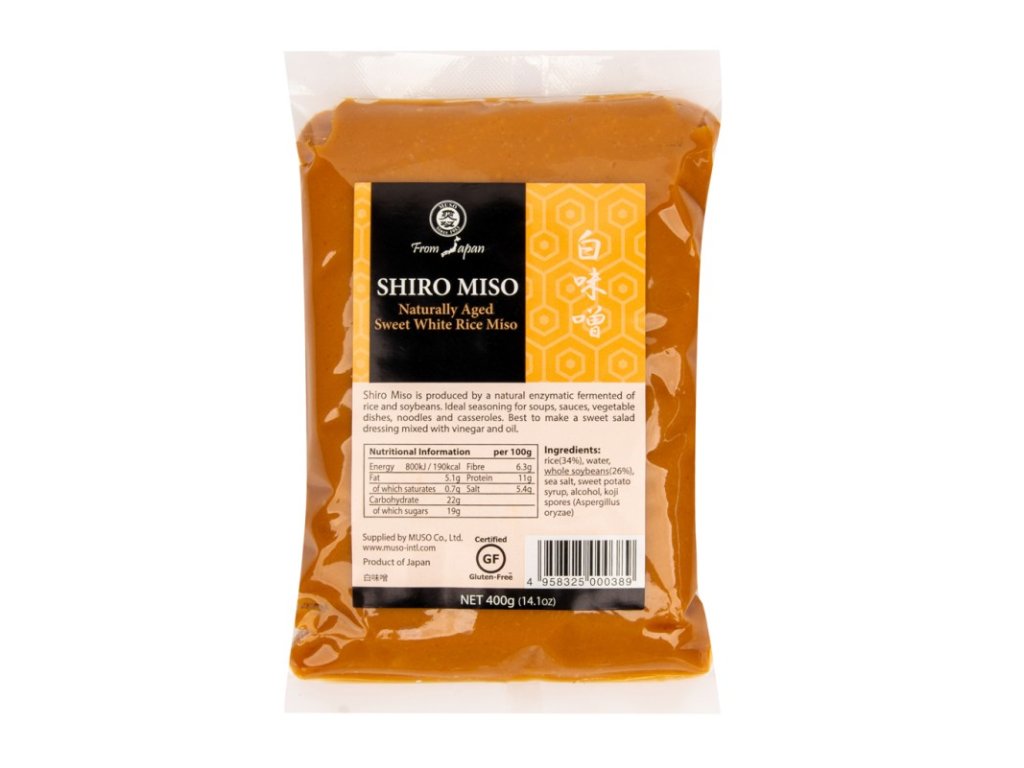 SHIRO MISO Z BÍLÉ RÝŽE BEZ LEPKU Shiro Miso je organické bílé miso s jemnou sladkou chutí, které se vyrábí fermentací sójových bobů s bílou rýží, mívá světle hnědou barvu, kratší fermentace a vyšší podíl rýže zajišťují jemnější a sladší chuť než klasické sójové miso. Fermentuje se tradičním způsobem přibližně1-3měsíce. Složení: rýže 35 %, voda, sójové boby, jedlá mořská sůl, alkohol 3 % (z třtinové šťávy), fermentační činidlo (Aspergillus oryzae) BEZ LEPKU (obsah gluténu < 20 mg/ kg) Použití: Miso lze přidávat do polévek, omáček a marinád, do pomazánek a dipů, lze s ním dochutit luštěniny a obiloviny, přidat jej do zeleninových pánví a v malém množství jej lze přidat do těsta na slané koláče nebo domácí chléb. Přidávejte na konci vaření a již nevařte. Naše nabídka misa obsahuje miso hatcho sójové , mugi z ječmene , shiro z bílé rýže a genmai z hnědé rýže. Skladování: Skladujte v suchu a chraňte před teplem a přímým slunečním zářením. Po otevření skladujte v uzavřeném obalu v chladničce. Hmotnost: 400gr MUSO CO.LTD. (známá i jako Muso From Japan) je japonský vývozce tradičních potravin, který působí od roku 1953. Specializuje se na makrobiotické a organické produkty, přičemž klade důraz na kvalitu, tradiční řemeslnou výrobu a suroviny bez GMO Výrobce: Kanemitsu Miso Co., Ltd. 628 Fuchu-cho, Fuchu-shi, Hiroshima 726-0005, Japonsko pro: MUSO Co., Ltd.1-2-12 Sonezaki, Kita-ku, Osaka 530-0057, Japonsko Dovozce: Econic HUB s.r.o., Nenačovice 87, 266 01 Beroun, Česká republikaDoplňkové parametry