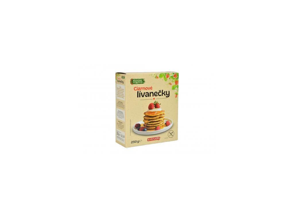 Cizrnové lívanečky Crispins je sypká bezlepková směs na přípravu hotového smaženého pokrmu s vysokým obsahem bílkovin, jejímž základem je cizrna. Díky cizrnovým lívancům si snadno a rychle připravíte lahodný oběd nebo svačinu. Pochutnají si určitě i děti. Složení: cizrna 34%, sušený bramborový škrob, cukr, kukuřičná krupice, lupinová mouka (86% lupina, kukuřice), vanilkový cukr, susšené droždí, sůl.Nutriční hodnoty