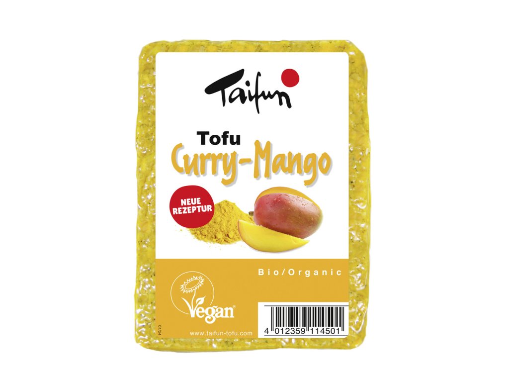 Složení: tofu* 82 % (sójové boby* 55 %, voda, chlorid hořečnatý, síran vápenatý), sušené mango* 6,1 %, limetková šťáva*, řepný cukr*, za studena lisovaný slunečnicový olej*, mořská sůl, kari* 1 %(koriandr*, kurkuma*, rýžová mouka*, pískavice*, kmín*, zázvor*, listy koriandru*, hřebíček*, zázvor*, kurkuma*, česnek*, chilli*