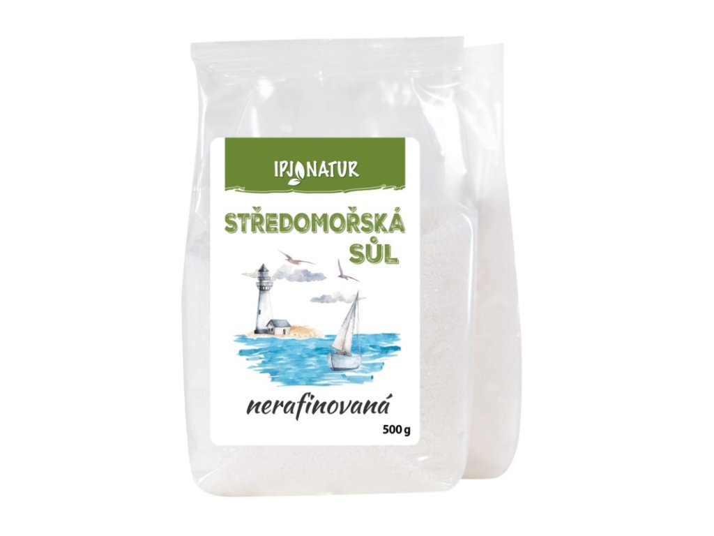 STŘEDOMOŘSKÁ SŮL NERAFINOVANÁ Nerafinovaná středomořská sůl se získává přirozeným odpařováním mořské vody v uměle vytvořených solných jezírcích na chráněném mořském pobřeží. Vedle chloridu solného obsahuje cca 2% dalších minerálů přítomných v mořské vodě. Na rozdíl od běžné kuchyňské soli neobsahuje protispékavé látky a přidané sloučeniny jódu. Složení: chlorid sodný >98% , vápník: <0,2% , hořčík: <0,19% , draslík: <0,1% PŘIROZENĚ BEZLEPKOVÁ SUROVINA Použití: Středomořská sůl je určená k použití v domácnosti pro přípravu a k dochucování jídel a pokrmů. Lze ji použít také do koupele a k výrobě relaxačních koupelových směsí. Z naší nabídky soli můžete vyzkoušet také sůl himalájskou bílou hrubou , himalájskou růžovou hrubou , sůl mořskou z Atlantiku hrubou nebo himalájskou černou jemnou Alergeny: Výrobek může obsahovat lepek, skořápkové plody, arašídy, sóju, sezam, oxid siřičitý a siřičitany z důvodu zpracování potravin způsobem křížových cest. Skladování: Skladujte v suchu a chladu, chraňte před přímým slunečním zářením. Hmotnost: 500gr IPJ NATUR je česká společnost ze Zlína, která se zaměřuje na výrobu a distribuci kvalitních surovin, specializuje se na sortiment zdravé výživy, BIO a bezlepkových produktů. Výrobce: IPJ NATUR s.r.o. Chmelnická 194, 760 01 Zlín, Česká republikaDoplňkové parametry