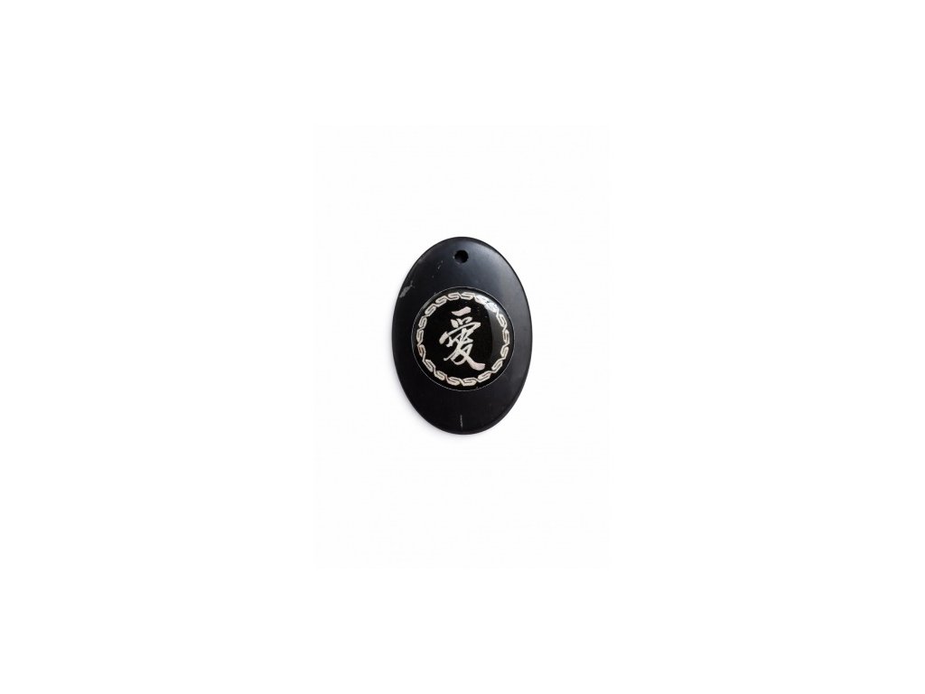 Šungit přívěšek (se šňůrkou) - ovál "Láska" č. 161 TML G297