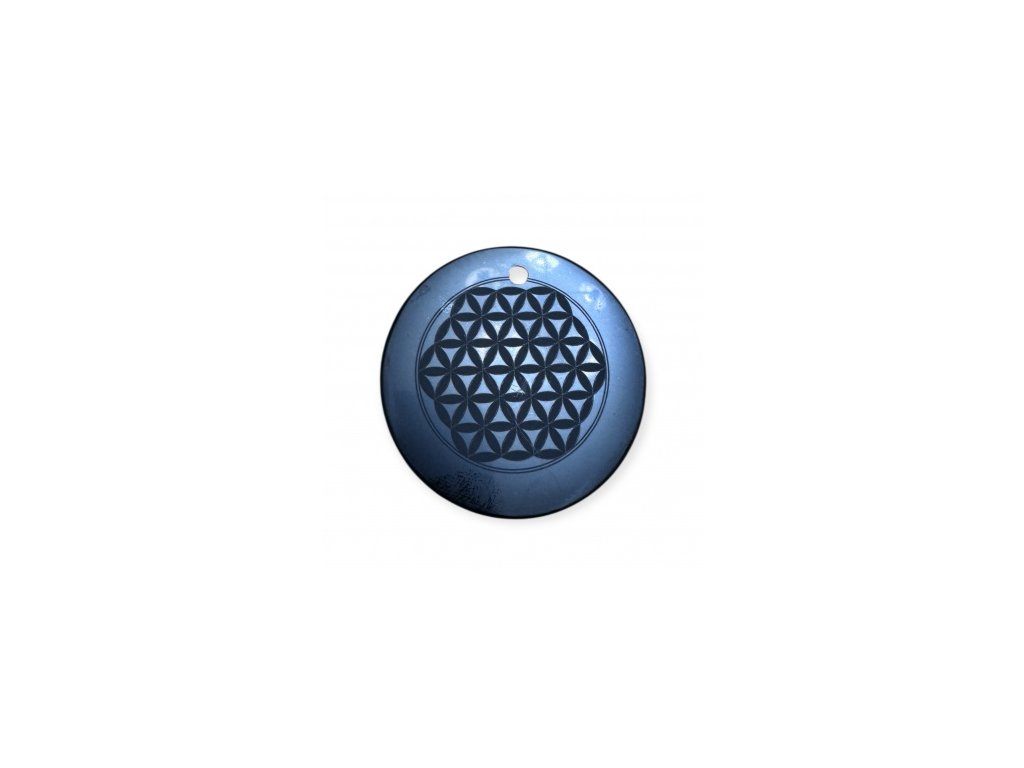 Šungit přívěšek kruh s gravírováním 52mm ,,Květ života,, (bez šňůrky) TML G288