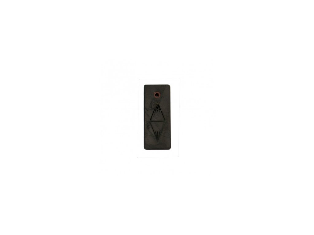 Tento šungitový přívěsek v čistém obdélníkovém tvaru je zdoben geometrickým motivem kosočtverce (diamantu), doplněným o krátké linie nad a pod symbolem, které působí jako stylizované „paprsky“ či akcenty. V symbolické rovině bývá diamantový tvar vnímán jako znak pevného středu, řádu, rovnováhy a uzavřené energie ; některé interpretace jej spojují i s runovou estetikou (bez nutnosti přisuzovat konkrétní tradici). Šungit je přírodní minerál s typicky sytě černým zabarvením a matným povrchem. Díky praktickému otvoru je přívěsek vhodný k zavěšení na šňůrku nebo řetízek. Design je nenápadný, ale motiv zůstává čitelný a esteticky výrazný. Vhodné jako: minimalistický šperk pro ženy i muže dárek se symbolickým významem ( pevný střed, řád, rovnováha, uzavřená energie ). doplněk k meditaci nebo rituálům Upozornění: Není hračka. Nevhodné pro děti do 14 let. Při prvním použití může šungit jemně pouštět pigment – doporučujeme krátce opláchnout a osušit. Chraňte před pádem a nárazy (minerál může prasknout). Uchovávejte mimo dosah malých dětí – nebezpečí vdechnutí/spolknutí drobných částí. Nejedná se o zdravotnický prostředek. Země původu: Rusko (Karélie) Dovozce a distributor pro ČR: TML a.s., Zábrdovická 25/2, 615 00 Brno, info@tml.czDoplňkové parametry